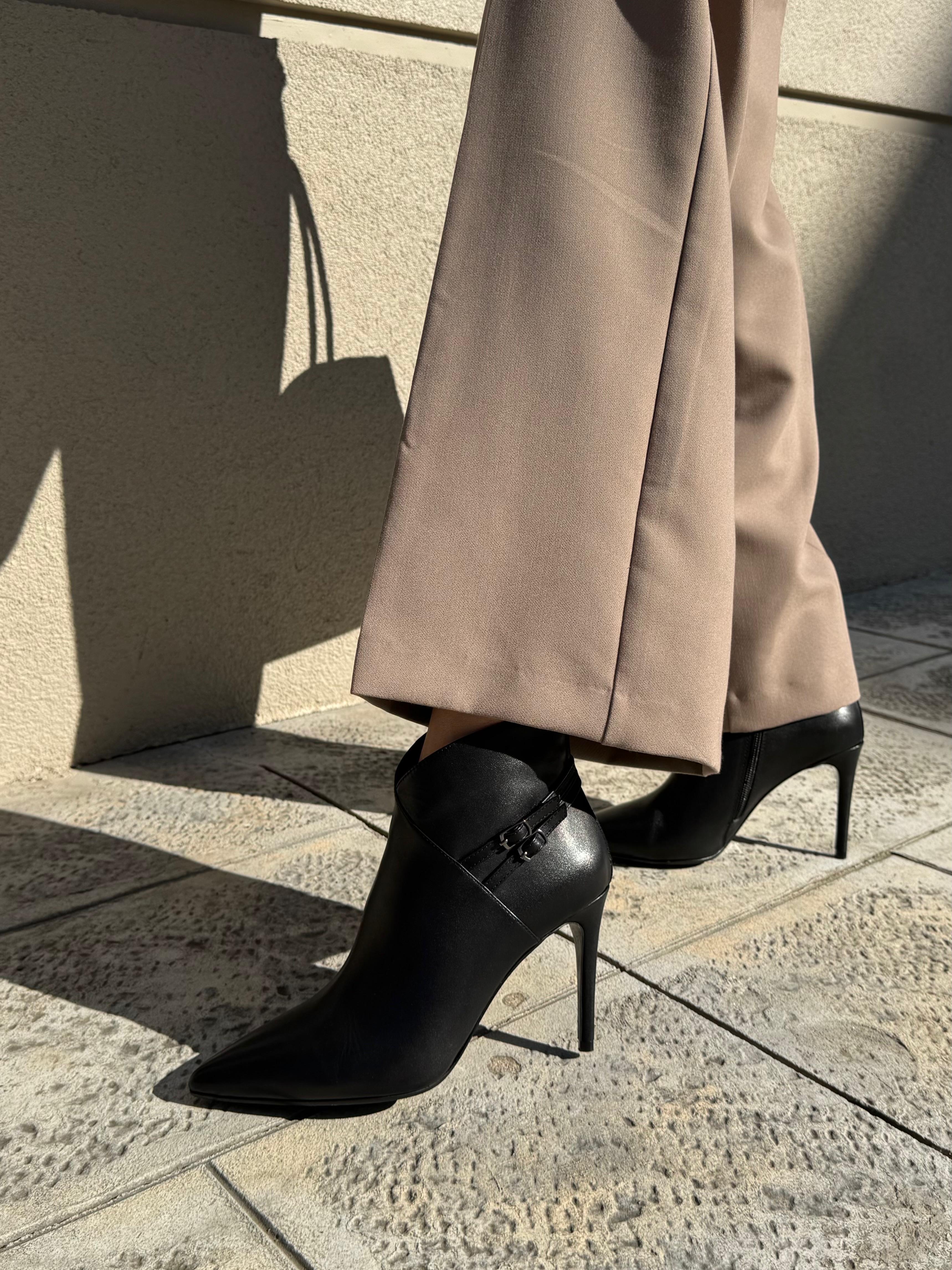 7568 SİYAH DERİ İNCE TOPUKLU BOT