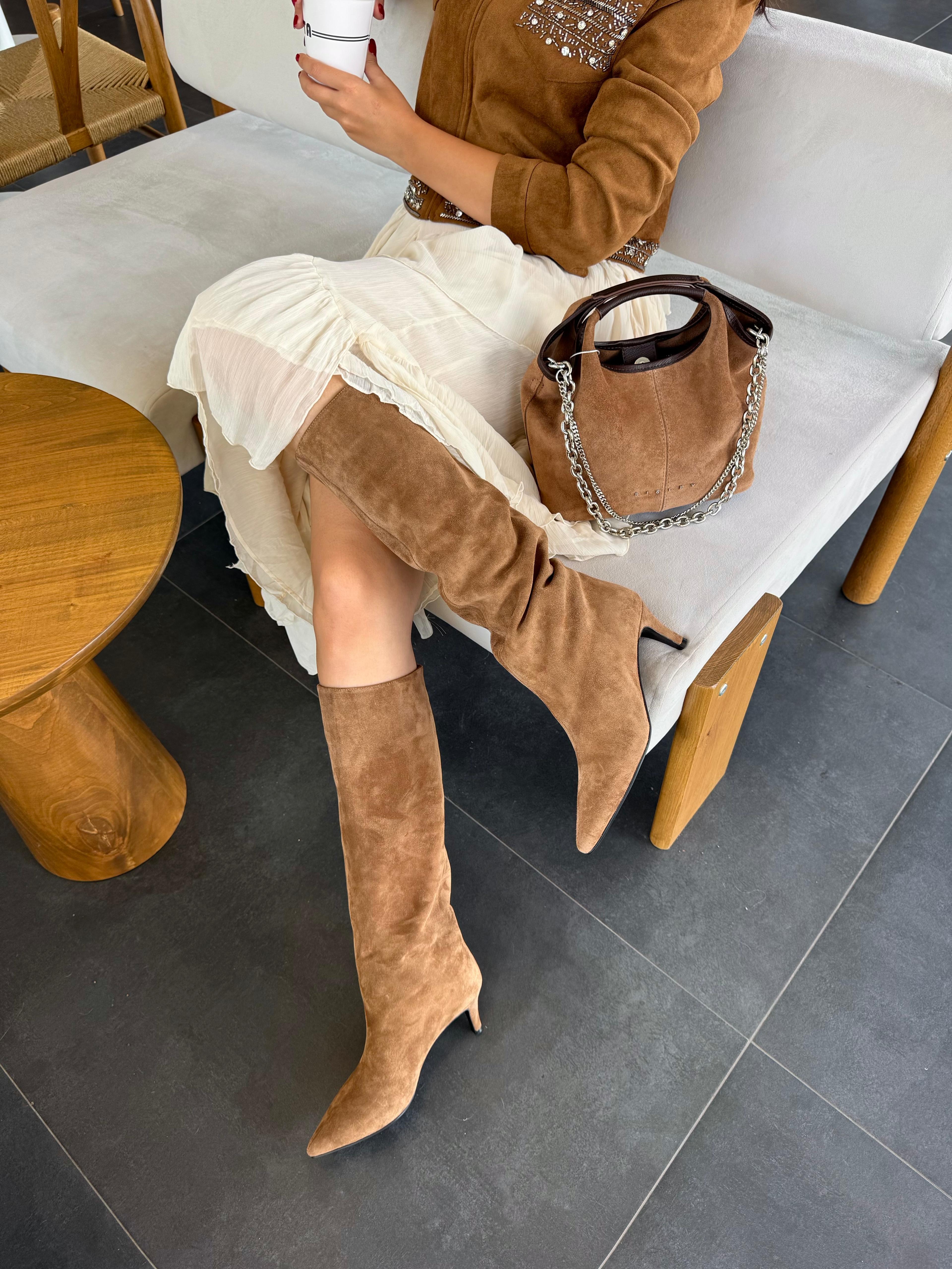 7578 TÜTÜN SÜET DERİ TOPUKLU ÇİZME