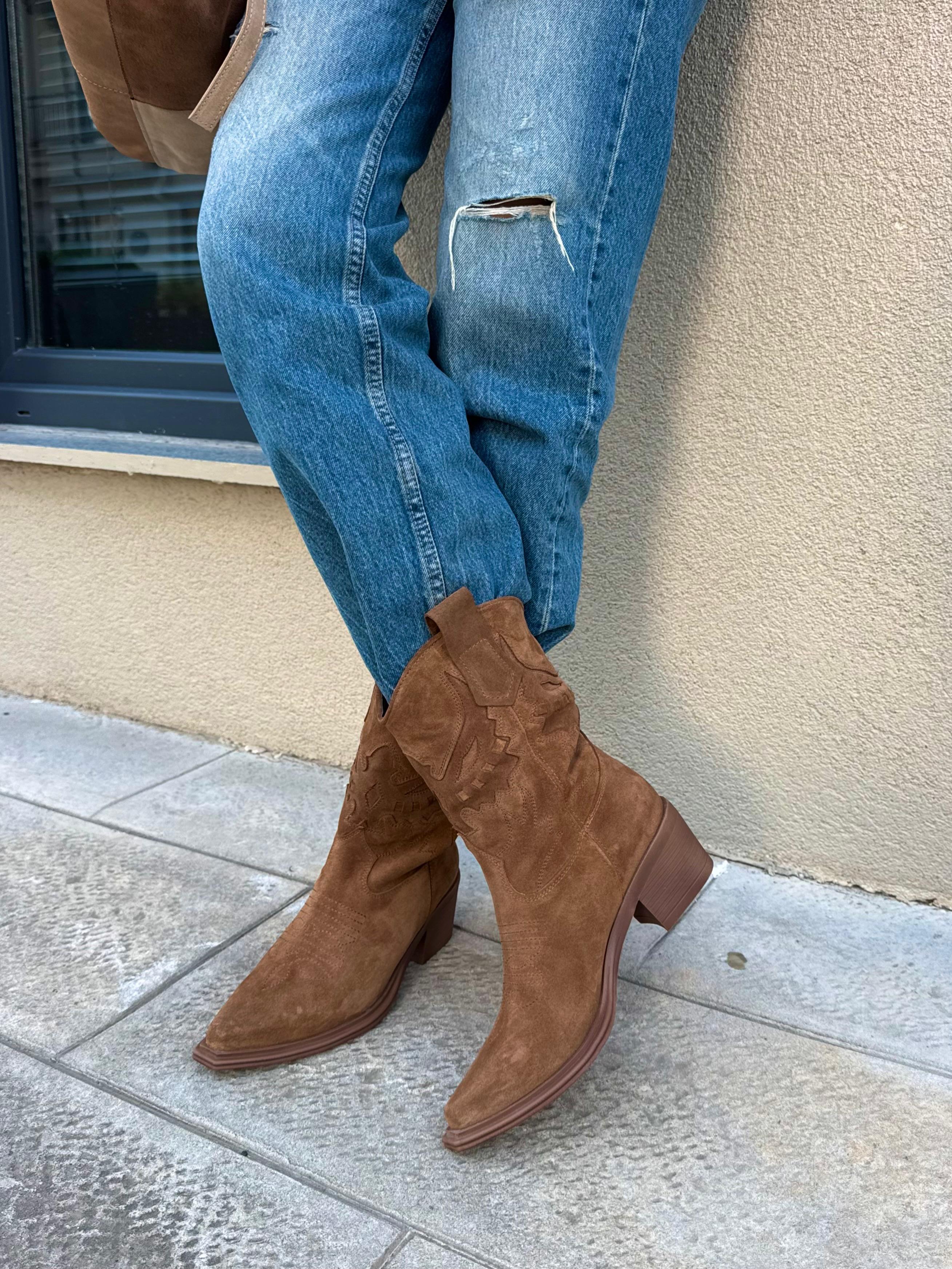 7602 TÜTÜN SÜET DERİ NAKIŞLI WESTERN BOT