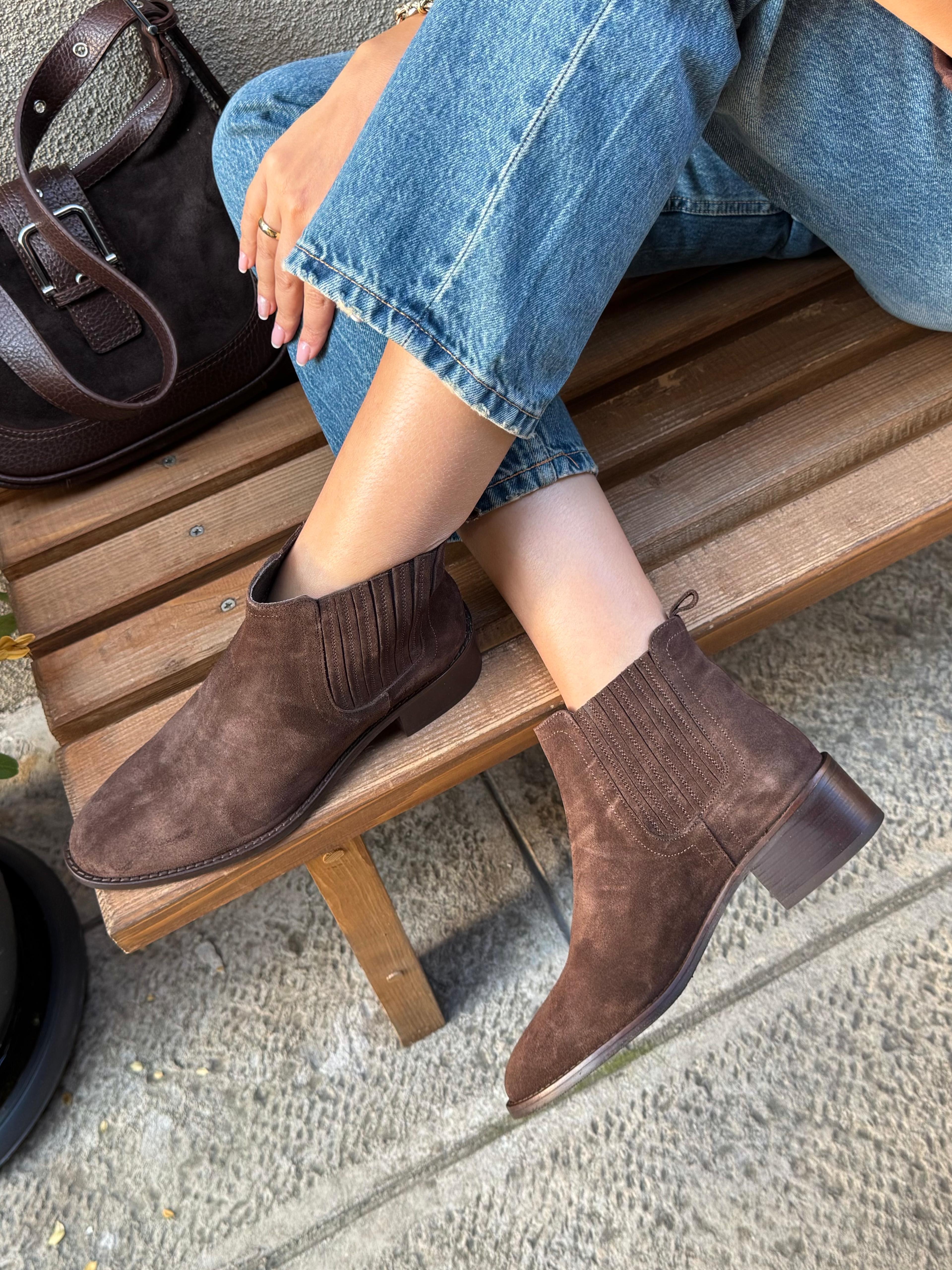 7608 KAHVE SÜET DERİ LASTİKLİ JURDAN TABAN BOT
